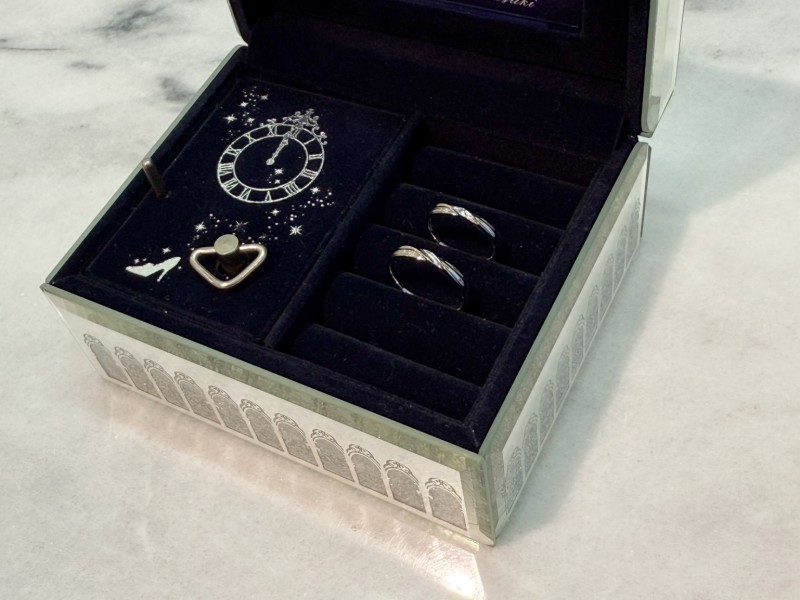 ご成約の際には、シンデレラブライダルコレクション限定のオルゴール付きジュエリーボックスも一緒にご注文いただき、特別な思い出の一つとなりました。