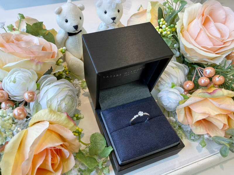ラザールダイヤモンドならではの、内側から光を放つような透明感のある輝きに、M様は初めてご覧になった瞬間、ひと目惚れされたご様子でした。