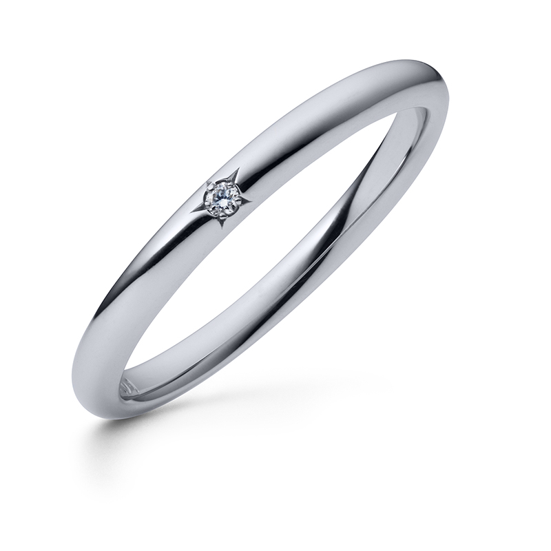 シンプル&ストレートなラインは、普段使いに最適なリングです。レディースは星型の石座にそっとメレダイヤをセッティングして、シンプルな中にも「星の砂」らしさを演出しています。