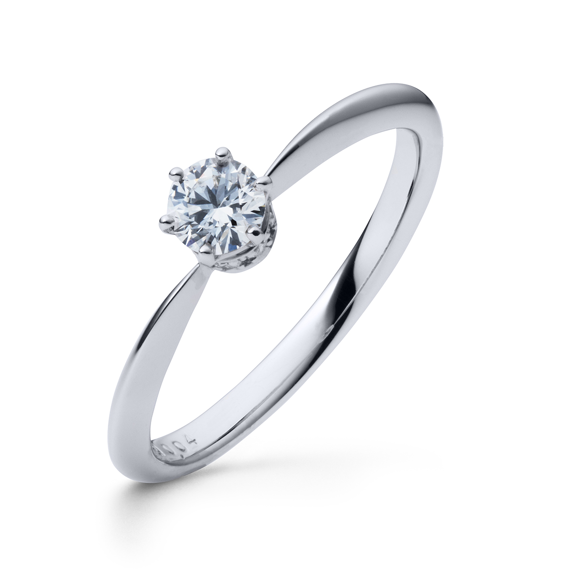 ストレートなアームが飽きの来ないデザイン。石座にある6石のメレダイヤは、いつまでも変わらないふたりの「信頼・尊敬・健康・協力・思いやり・笑顔」の6つの願い、センターダイヤには変わらない「愛」の誓いが込められています。見る方向によって、違う表情を見せてくれるのが人気の秘密です。