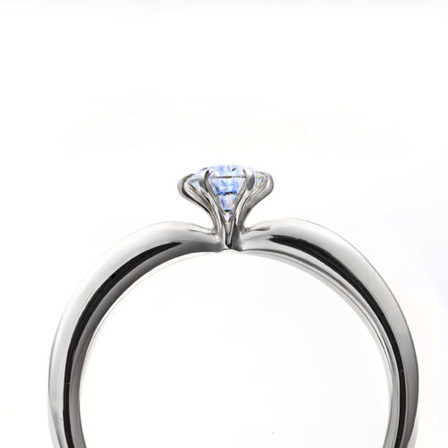 正面から見るとシンプルながらサイドは妖精のように繊細なソリティアリング。