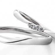 すっきりと並んだ3石のグラデーションと、流れるようなリングのラインが優しく指を包み込むマリッジリング。