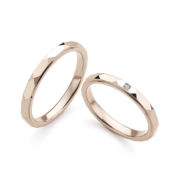 ラベンダーの甘い蜂蜜色をイメージしたピンクゴールドが両サイドから、さりげなくのぞくのもポイントです。 こちらの結婚指輪は丈夫で着け心地の良い、鍛造(たんぞう)製法でおつくりしております。
