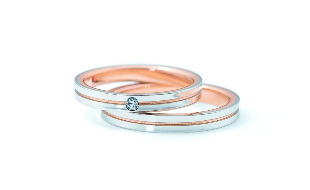 永遠に途切れる事のない指輪を一周するラインがこれからの二人を表現しています。