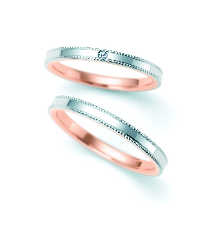 リングの輪郭に沿ってミル打ちでラインを入れる事で、細身ながらも存在感を忘れない美しく上品なフォルムを演出。