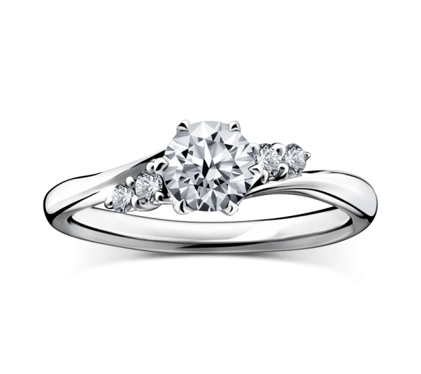 緩やかで細身のウェーブがフェミニンな印象のエンゲージリング。