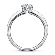 オーソドックスなデザインのエンゲージリング。側面にはダイヤモンドを輝かせるための光を取り込む穴が設けられていて、美しい輝きを放ちます。