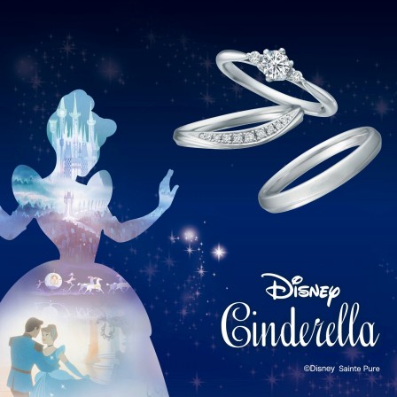 シンデレラが信じた夢の象徴であるお城と階段をリングそれぞれに表現しています。シンデレラの夢を叶えた美しい魔法。その輝きはいつまでもシンデレラを包み煌めきます。