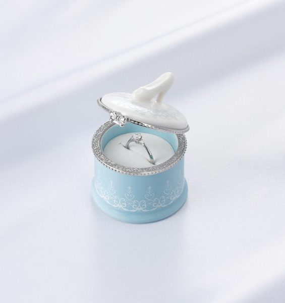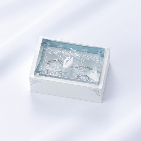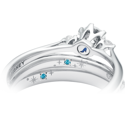 シンデレラが信じた夢の象徴であるお城と階段をリングそれぞれに表現しています。シンデレラの夢を叶えた美しい魔法。その輝きはいつまでもシンデレラを包み煌めきます。