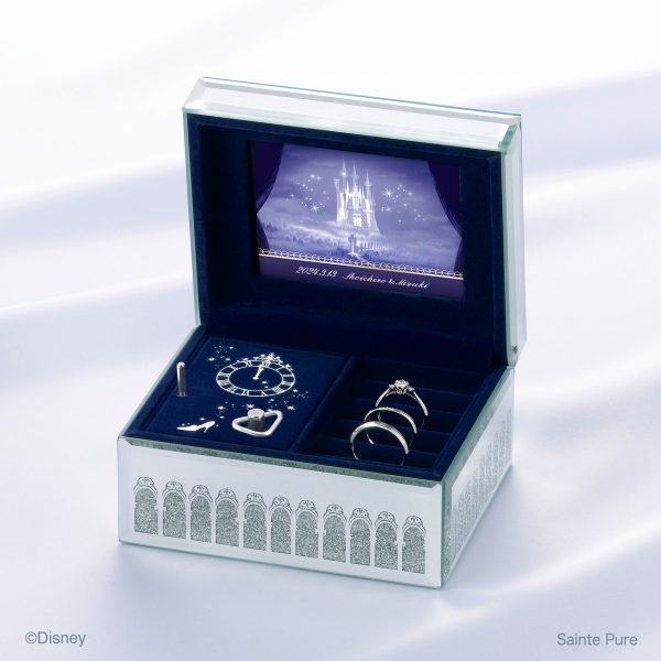 ディズニーアニメーション映画「シンデレラ」のテーマ曲のひとつ「夢はひそかに」を奏でるロマンチックなオルゴールジュエリーボックスは鏡貼りの外装が華やかなとっておきの仕上がりです。オルゴール使用のジュエリーボックスは完全オリジナル