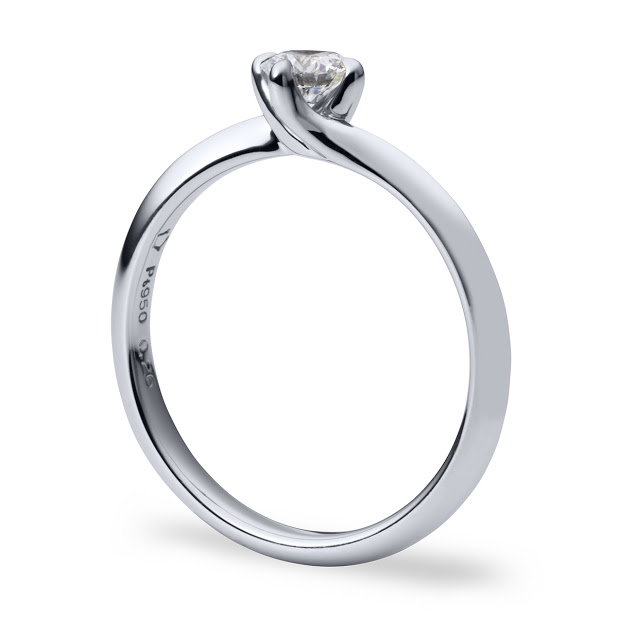 2人の愛の抱擁をイメージして作られ、左右から伸びるアームがダイヤモンドをやさしく包み込むようなデザインです。