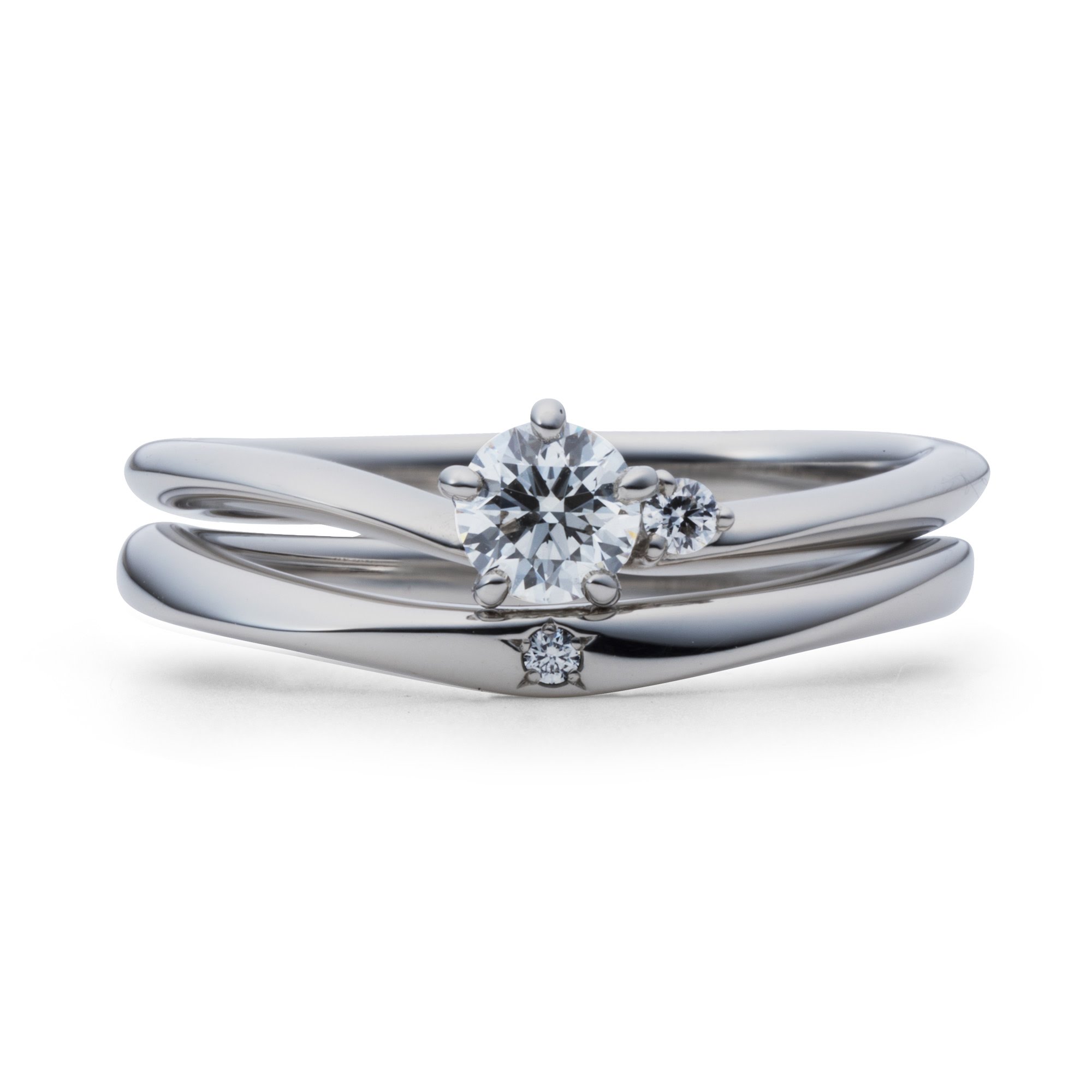 アシンメトリーなウェーブラインは、普段使い出来るエンゲージリングとして人気です。