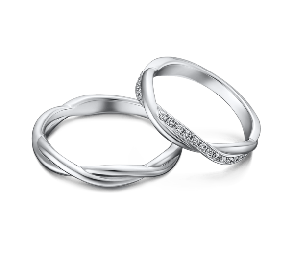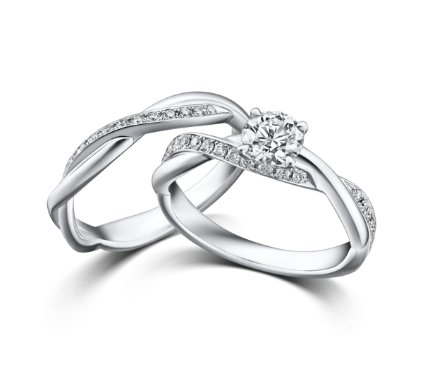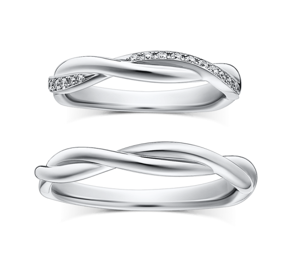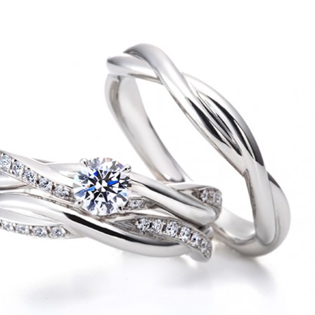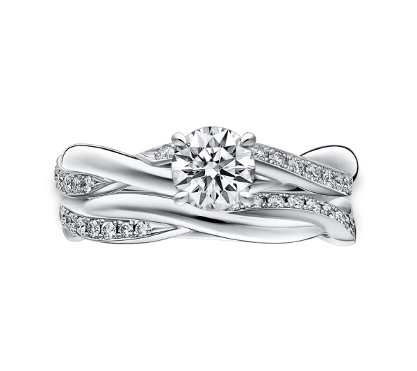 エンゲージリング・マリッジリングそれぞれ単体での美しさはもちろん重ねて着けると、まるで1 本の蔦のように寄り添います。