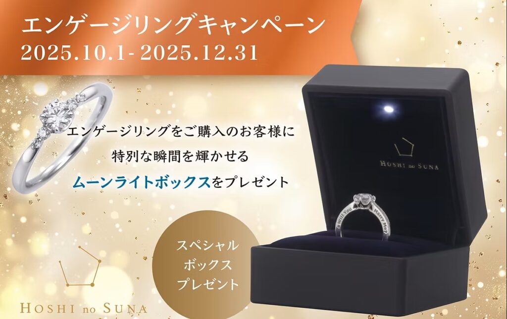 エンゲージリングをご購入のお客様に、センターストーンのアップグレードに加えて、大切なリングを美しく照らしプロポーズの瞬間を感動的に演出する『ムーンライトボックス』をプレゼントいたします。