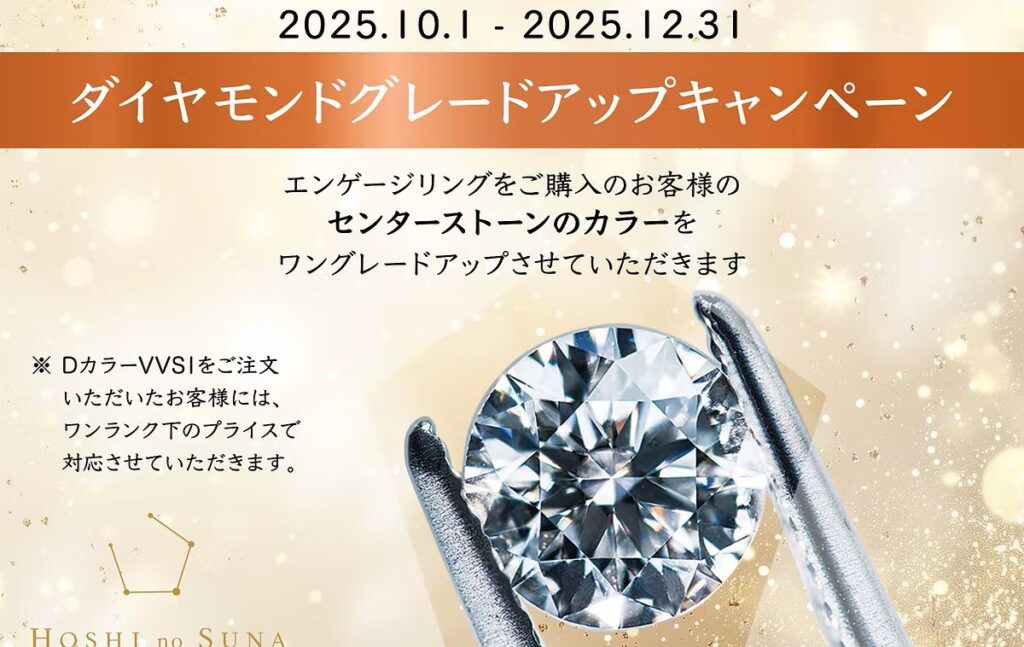 期間中にエンゲージリングをご購入のお客様にセンターストーンのカラーグレードをワングレードアップさせていただきます。