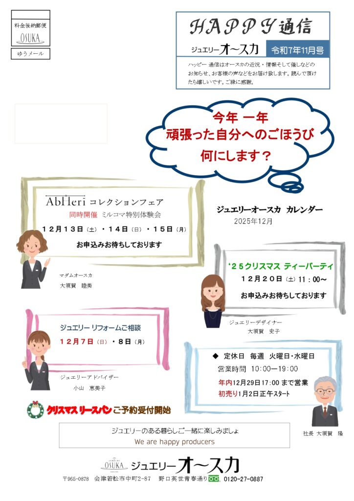 寒さも募る折、皆さまお身体に気をつけて、師走を駆け抜けましょう。