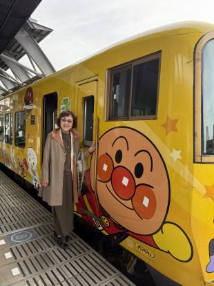 瀬戸大橋を渡り、アンパンマン電車に乗って目的地「高知市」へ到着。