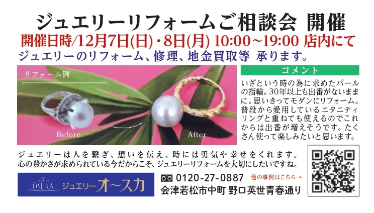心の豊かさが求められている今だからこそ、ジュエリーリフォームを大切にしたいですね。また地金も40年ぶりの高騰を見せています。今回このチャンスをお見逃しなく。相談は無料です!お気軽にご来店ください!!