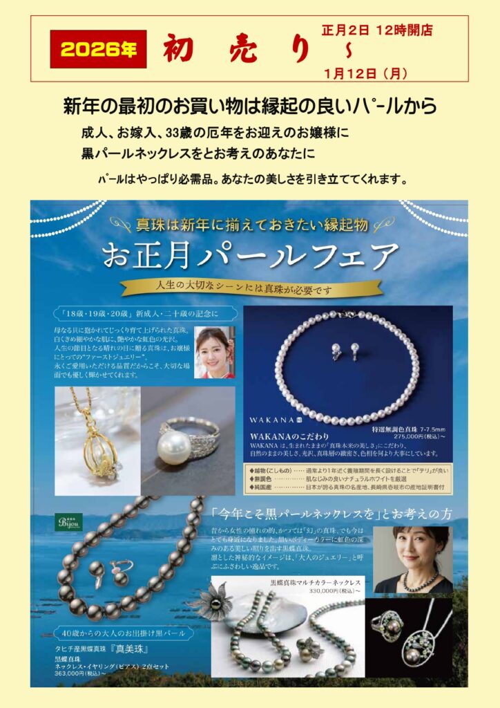 <2026年初売り>1月2日(金)12:00開店~1月12日(月)