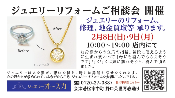 心の豊かさが求められている今だからこそ、ジュエリーリフォームを大切にしたいですね。また地金も40年ぶりの高騰を見せています。今回このチャンスをお見逃しなく。相談は無料です!お気軽にご来店ください!!